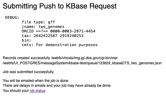 To view the status of your transfer jobs, you can either click the link to "job status" in the confirmation, or go to "My Jobs" under the "My IMG" dropdown.
